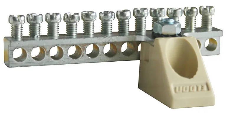 12-napaista eristettyä liitintä käytetään suojajohtimena vanhemmissa ohjauspaneeleissa yksinkertaisilla nollalaitteilla, kun rakennetaan ja asennetaan jälkivirtalaitteita.
