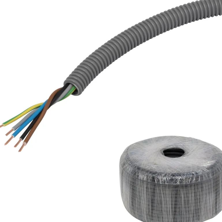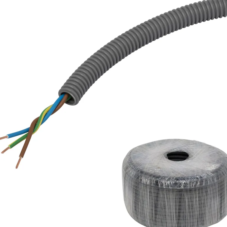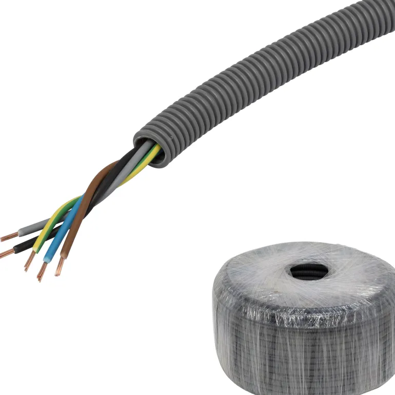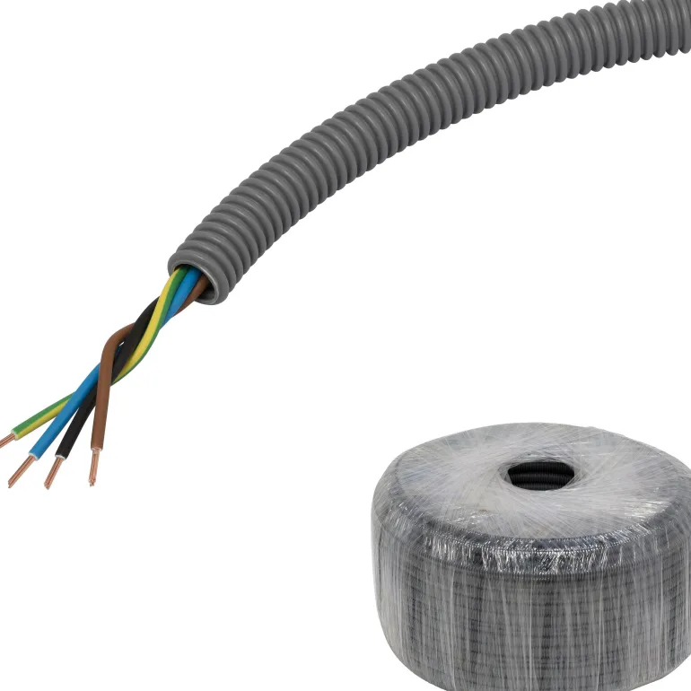 Aaltoputki PP, esireititetty kierretty FQ, CPR-luokka Dca, upotettava, jäykkyysluokka 750 N, lämpötila-alue -25…+90 °C, pituusmerkitty, putket standardin EN 61386-22 mukaisia, halogeenittomia