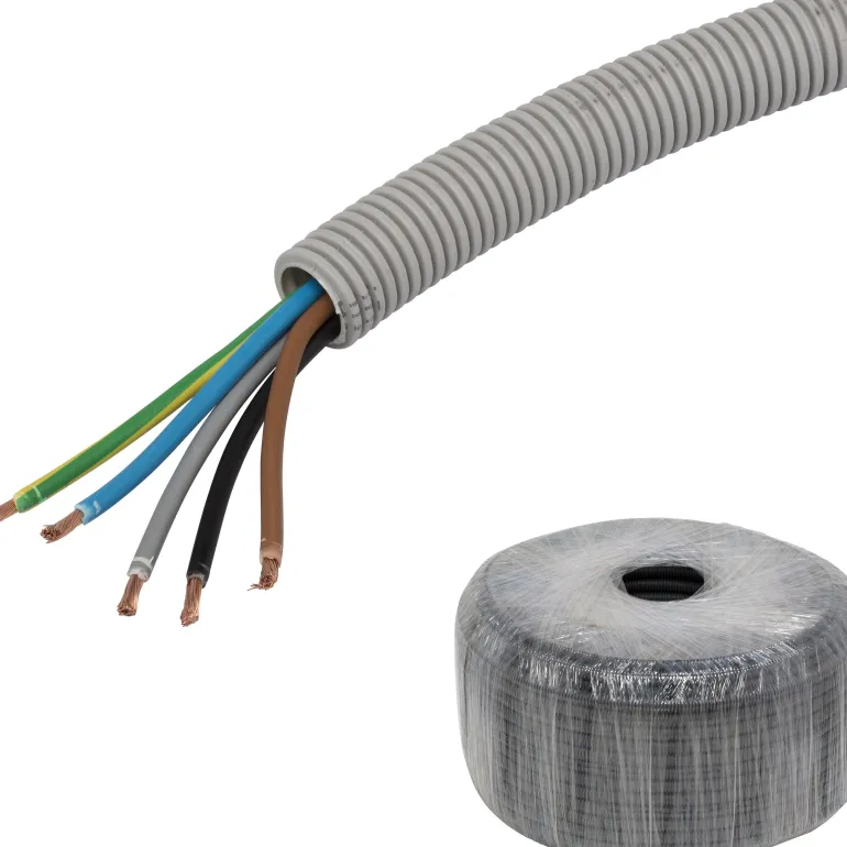 Aaltoputki PP, esireititetty RQ, CPR-luokka Dca, upotettava, jäykkyysluokka 750 N, lämpötila-alue -25…+90 °C, pituusmerkitty, putket standardin EN 61386-22 mukaisia Toimitetaan tynnyrissä