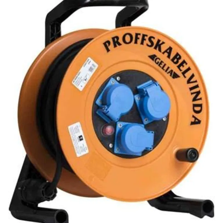 25 m:n kaapelikela, jossa on 3 pistorasiaa (schuko) 16 A, 230 V, itsesulkeutuva kansi ja jarru. Kaapelikela on testattu -20 °C:n lämpötilassa