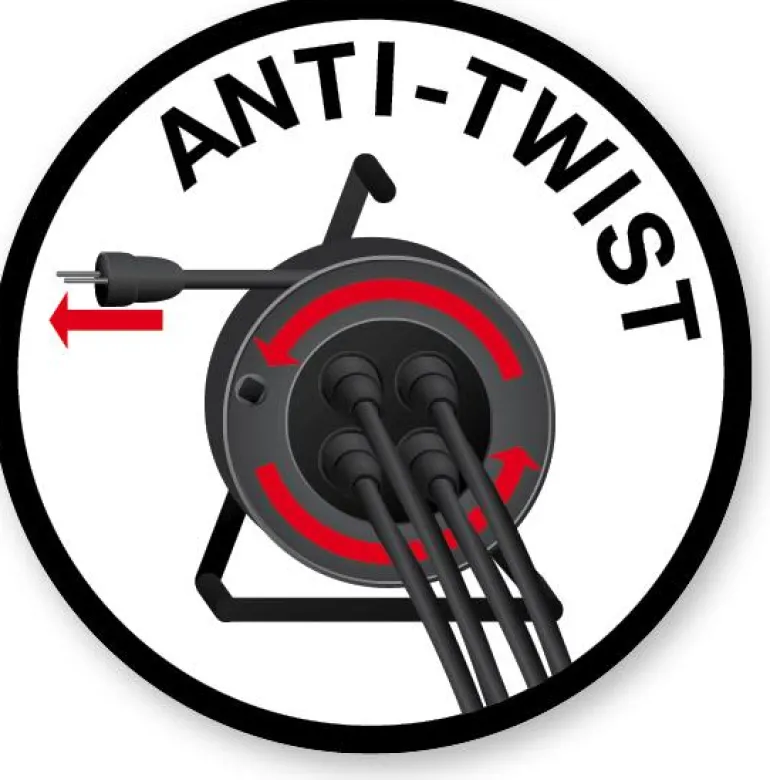 Kaapelikela 3G1.5 PUR-kaapelilla, itsestään sulkeutuva kansi ja jarru sekä kiinteä napa/kiertymisenesto. Halogeeniton kaapeli on erittäin joustava, UV-säteilyn-, otsonin-, öljyn- ja kemikaalinkestävä ja sopii erityisesti ympäristöihin, joissa kaapeli altistuu suurelle rasitukselle. Yliajettava ja iskunkestävä. Kela on testattu -30 °C:n lämpötilassa.
