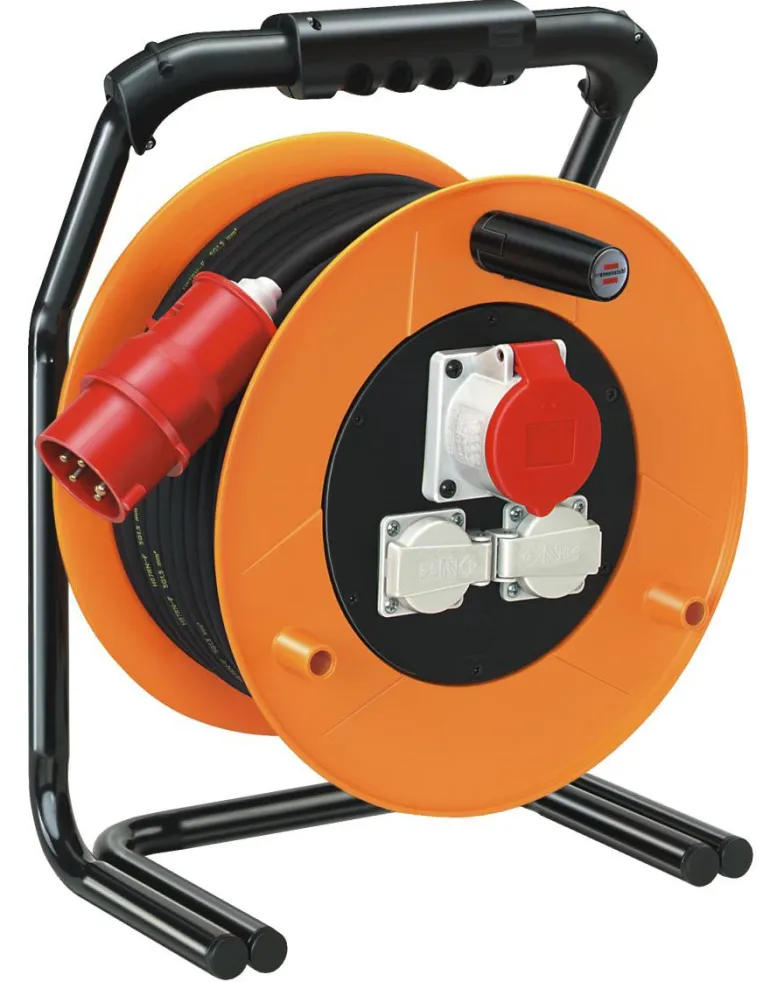 Kaapelikela, jossa on 16 A CEE-liitin ja 2 Schuko-pistorasiaa. Varustettu lämpösuojauksella ja 30 metrin pituisella kaapelilla.
