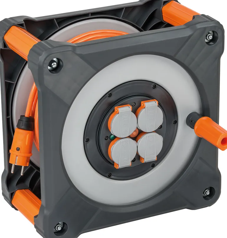 Kaapelikela oranssilla PUR-kaapelilla H07BQ-F. 4 kpl Schuko-liitin itsesulkeutuvalla kannella, suojausluokka IP44. Ylikuumenemissuoja. Erittäin vankka malli, joka sopii ammattimaisiin rakennus- ja teollisuustöihin.