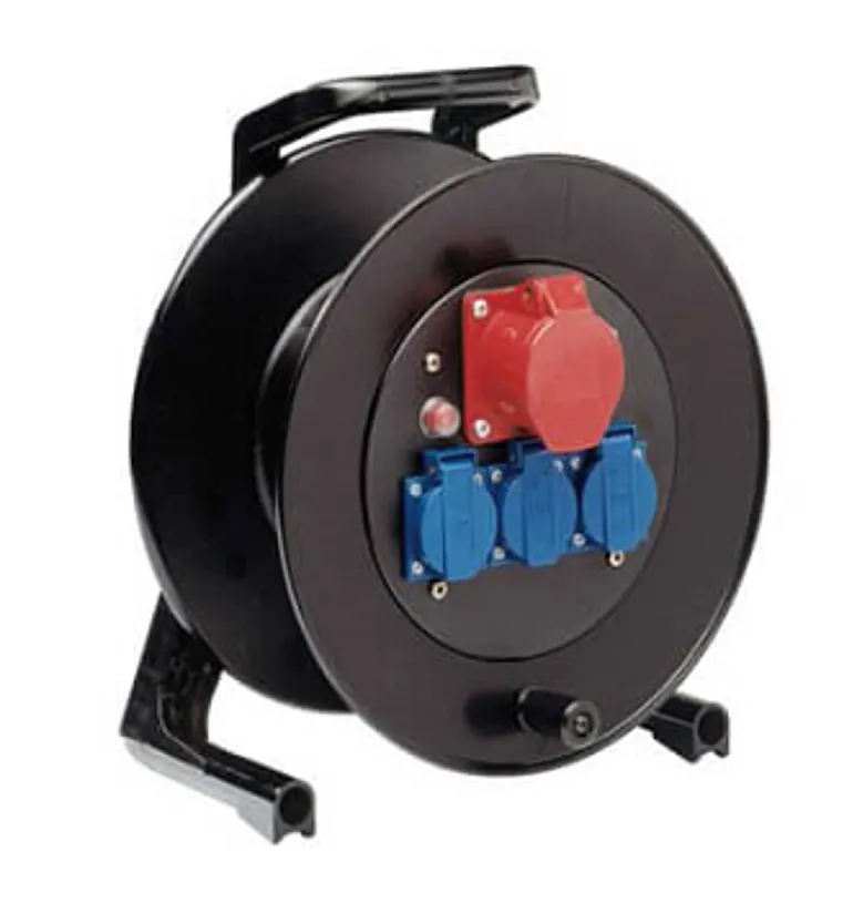 Vankka kaapelikela ulkokäyttöön. 1 pistorasia CEE 16 A, 3 pistorasiaa 230V 16A, 25 m RDOE 5G2.5 kaapelilla.