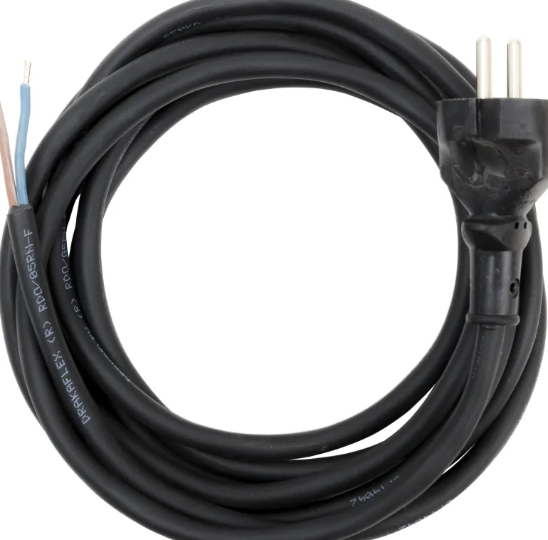 Kumikaapeliin valettu pistoke esimerkiksi kaksoiseristettyjen sähkötyökalujen vaihtoon. Kaapeli RDO (H05RN-F).
