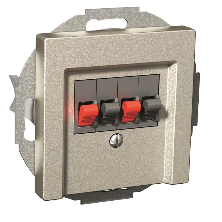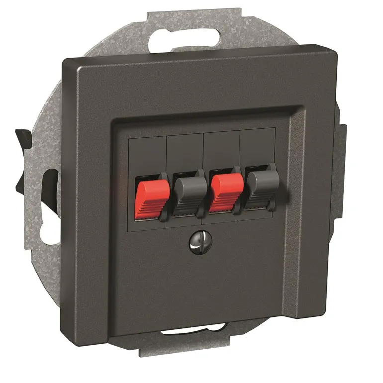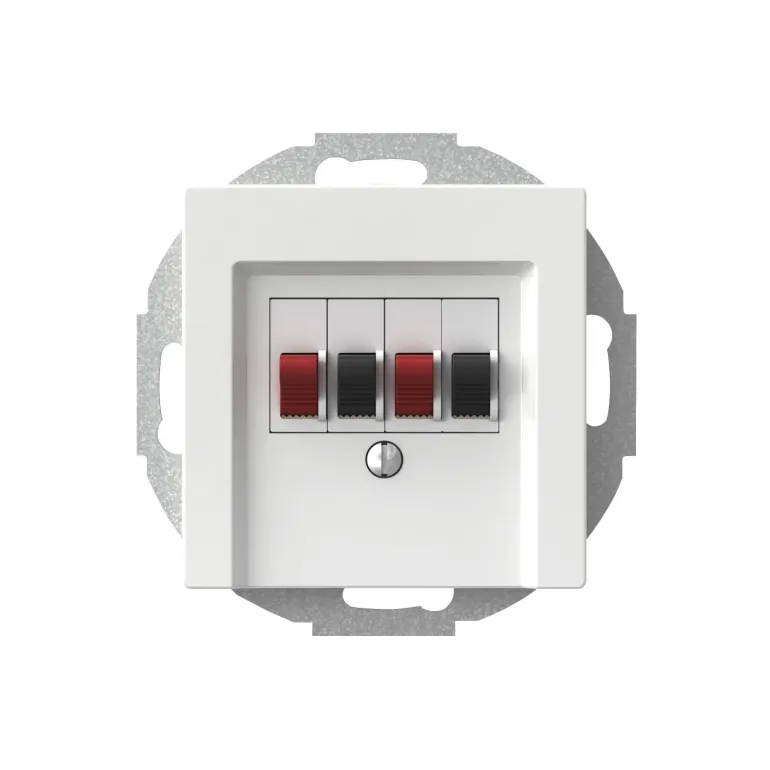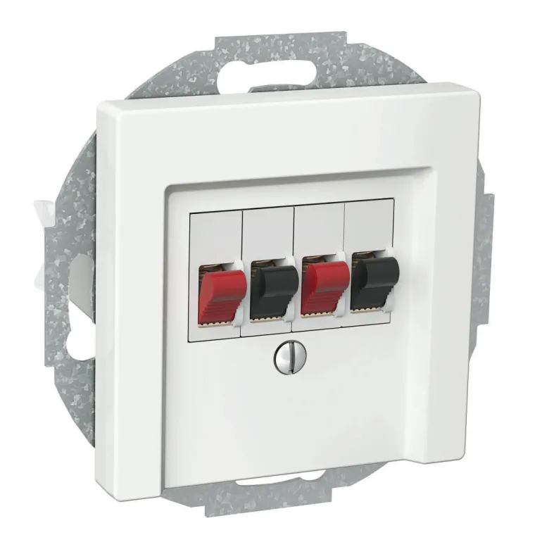 Kaiutinpistorasia on halogeeniton, ja se on valmistettu mattapintaisesta kestomuovista. Kynsi- ja ruuvikiinnitys. 76 x 76 x 62 mm (K x L x H).
