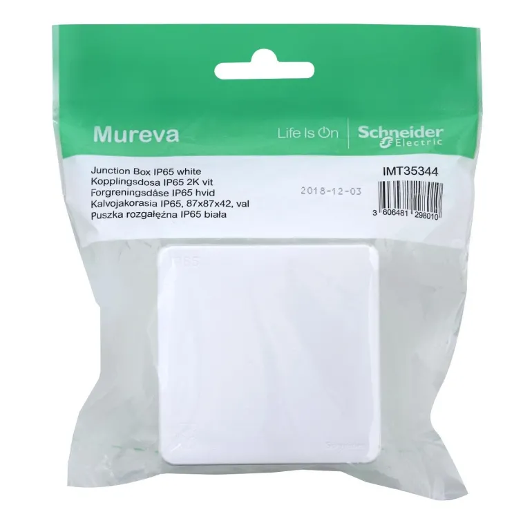 Kalvojakorasia IP65 pinta-asennukseen. Kaapeliläpivientien määrä: 14 x 19 mm. Kotelon läpivienti: kalvoläpivienti. Säänkestävä ja valutiivis. Materiaali: PP (polypropeeni). Mitat: K87 mm x L87 mm x S42 mm. Tuotteen paino: 62 g. Kiinnitystapa: Ruuveilla: Kojeen runko. Ympäristön lämpötila käytettäessä: −25 – 60 °C. Standardit: EN 60670. Tuotesertifiointi: DEMKO, FIMKO, NEMKO, SEMKO. Värisävy: Valkoinen (RAL 9003).