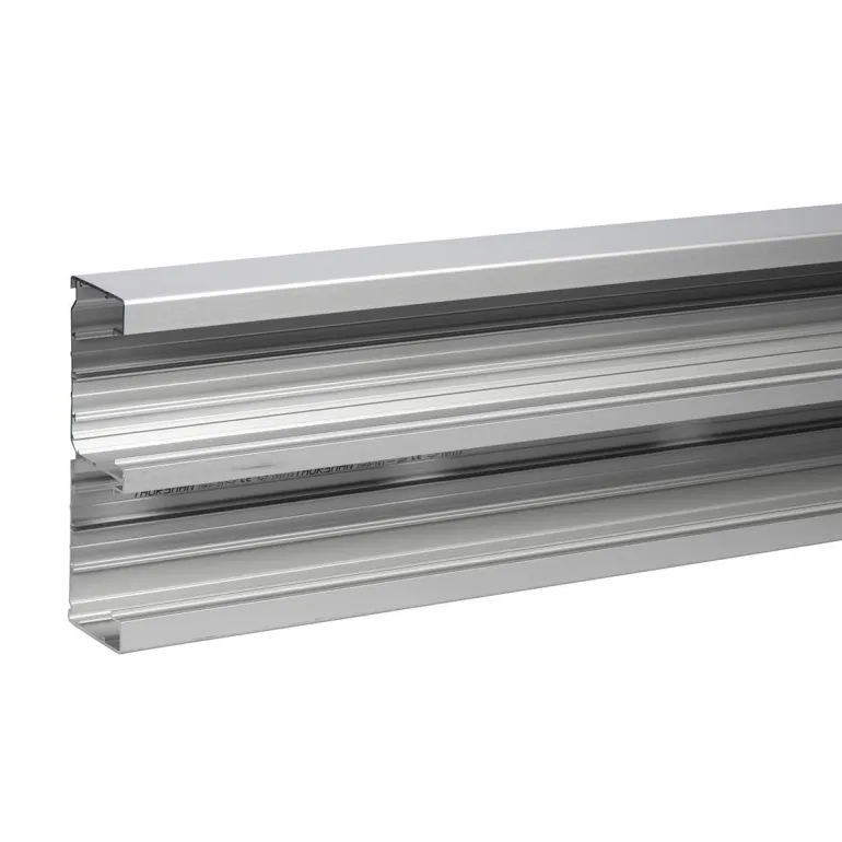 Valmistettu alumiinista, jossa on kaksi erillistä lokeroa ja erilliset kannet. Ylä- ja alaosastojen välinen kiinteä väliseinä on rei’itetty 200 mm: n välein. Molemmat osastot voidaan jakaa 4 lokeroon. Varustettu maadoitusurilla.