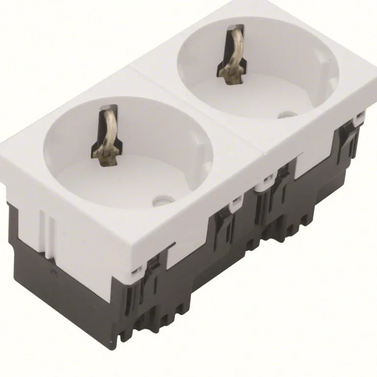 Kanavapistorasia 2-osainen 16A IP2XC jousiliittimillä. Valkoinen RAL9010, L45xK90 mm. Sopii Hager lattiarasioihin tarkoitettujen kojerasioiden GTVR300 ja GTVR400 sekä GBVR300 ja GBVR400 asennuskehysten GBMBV34R2 ja GBMVB34R3 kanssa.