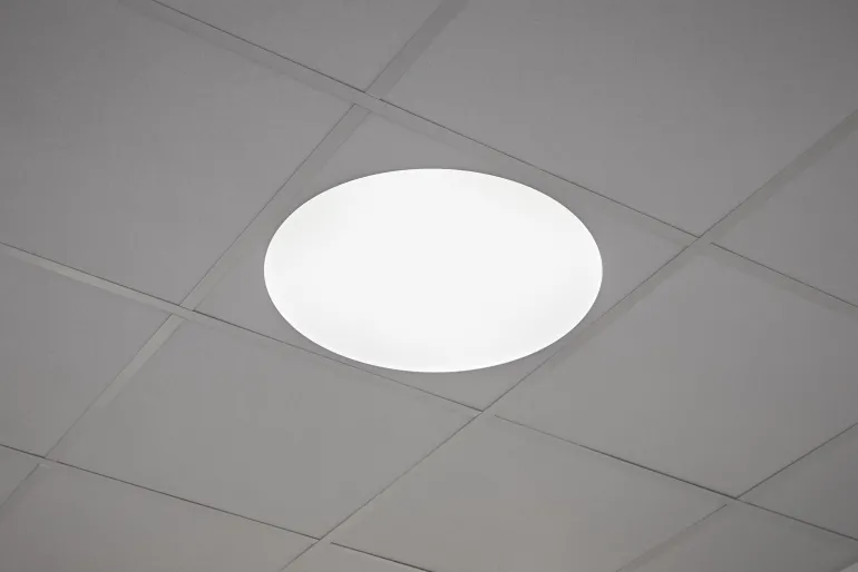 595x595x2 mm kansi luo pyöreän valokuvion yhdessä LED-paneelien kanssa.