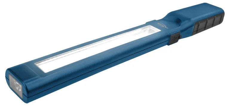 Ladattava työvalaisin/työvalo ammattikäyttöön. Kevyt ja vankka rakenne. Pää-LED-valo 450 lm ja päädyssä lisä-LED-valo 70 lm. Kirkas valkoinen valo COB LED -tekniikan ansiosta. Valaisimessa kaksi integroitua kiinnitysmagneettia.