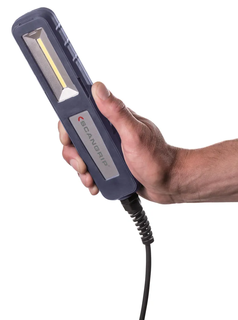Kätevä käsivalaisin (työ-/tarkastusvalaisin) tehokkaalla 750 luumenin valovirralla. Valaisin on suojattu pölyltä ja roiskuvalta vedeltä (IP54). Virtajohdon pituus 5 m.
