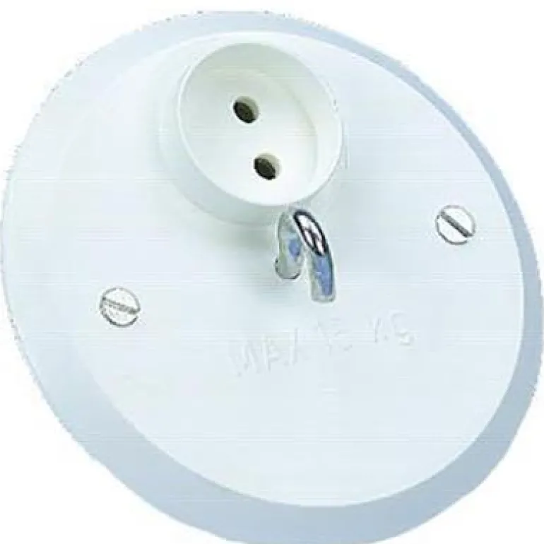 2-napainen maadoittamaton kattorasian kansi valaisinpistorasialla ja ripustuskoukulla. Asennetaan kattorasiaan.