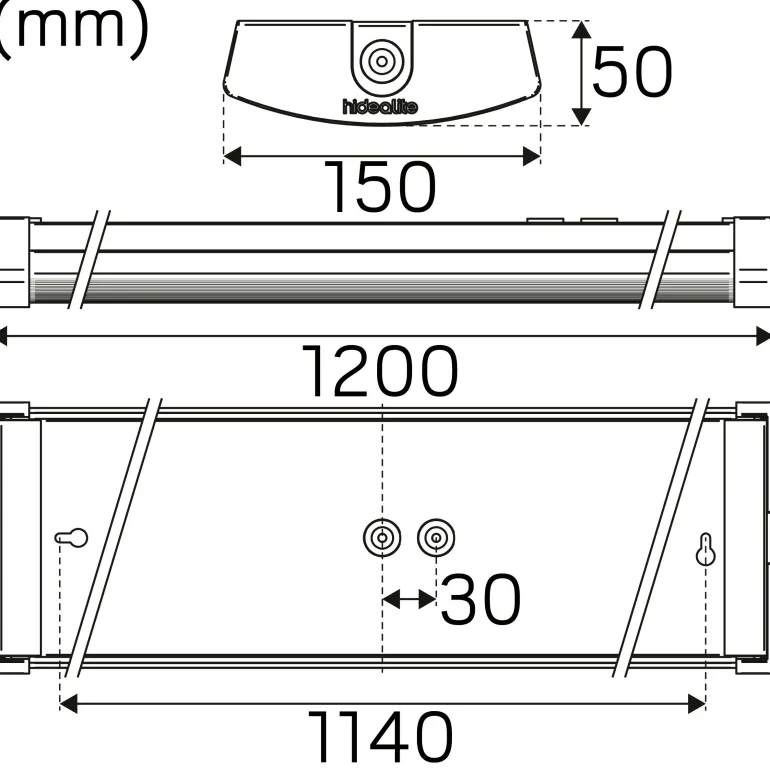Hide-a-lite Liteline 1200 on IP44-kattovalaisin, jonka värilämpötila on 4000K, suuri valovirta 4850 lm ja erittäin hyvä tehosuhde, jopa 136lm/W ilman opaalikalvoa. Kattovalaisimessa on valkoinen lakattu teräsrunko taittuvilla muovipäillä ja prismaattinen akryylikansi opaalikalvolla tasaista valonjakautumista varten. Hide-a-lite Liteline 1200 on helppo säätää suurempaan valovirtaan.