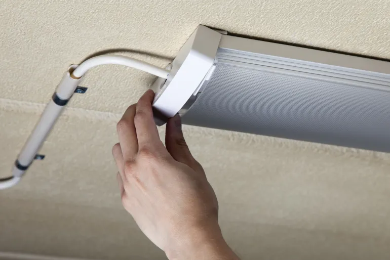 IP44-kattovalaisin, jonka pituus on 1200 mm, värilämpötila 4000K, suuri valovirta 4850 lm ja erittäin hyvä hyötysuhde. Helppo säätää suurempaan valovirtaan. Mikroanturilla.