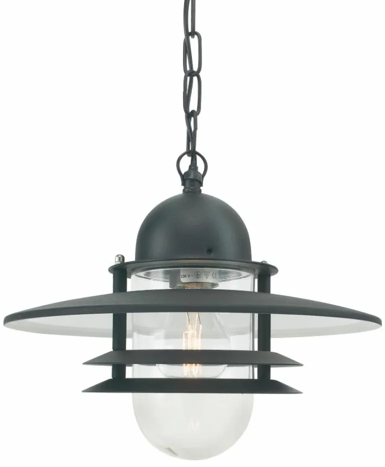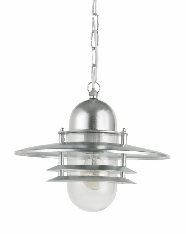 Kattovalaisin, sinkitty tai jauhemaalilla mustaksi maalattu. Valaisimessa on kirkas lasi ja E27-kanta. Ripustetaan ketjulla.