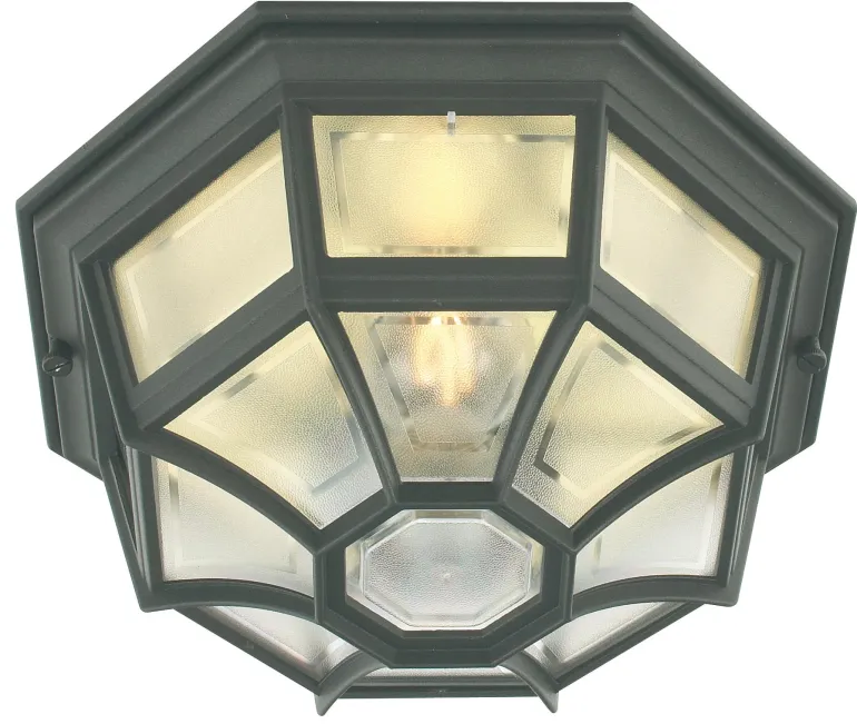 Klassinen kattovalaisin. Valaisin on 290 mm leveä, jauhemaalattu mustaksi.