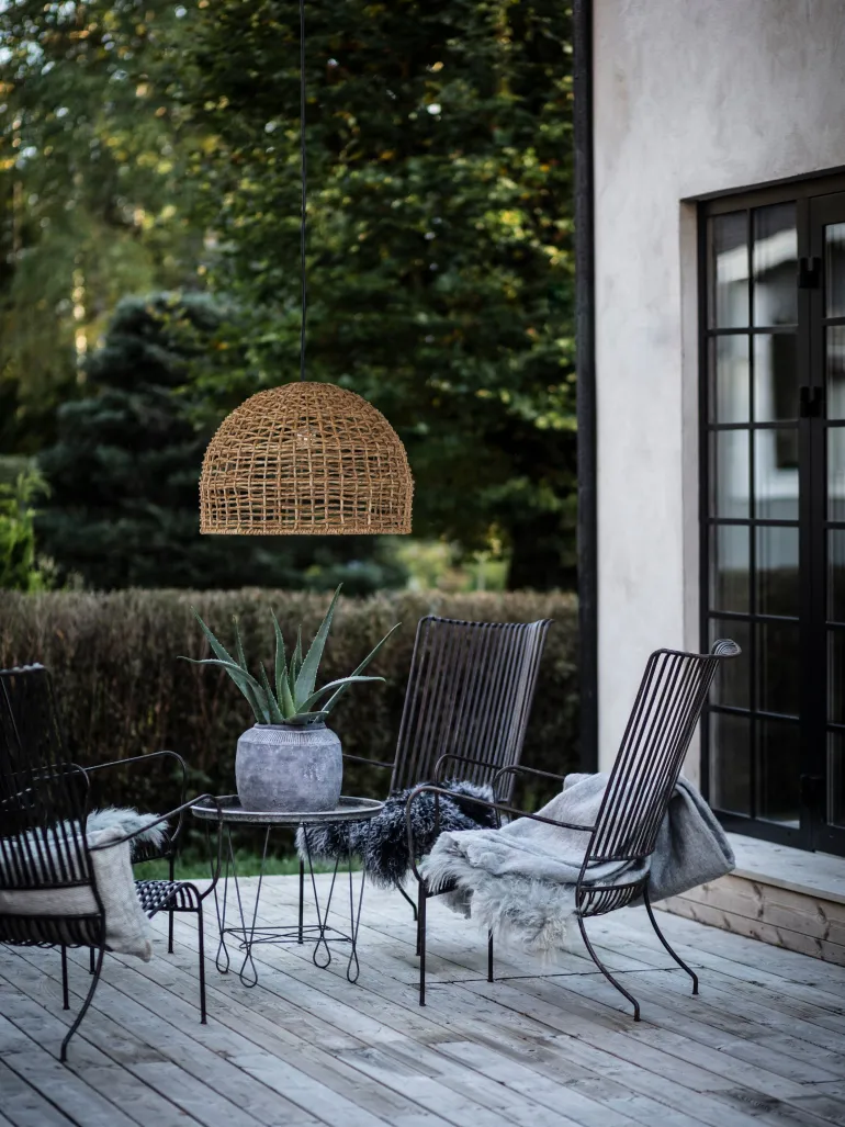Cebu on kattovalaisin kauniilla varjostimella punotusta luonnonrottingista. Sopii niin sisä- kuin katettuun ulkotilaan, esim. lasiterassille.