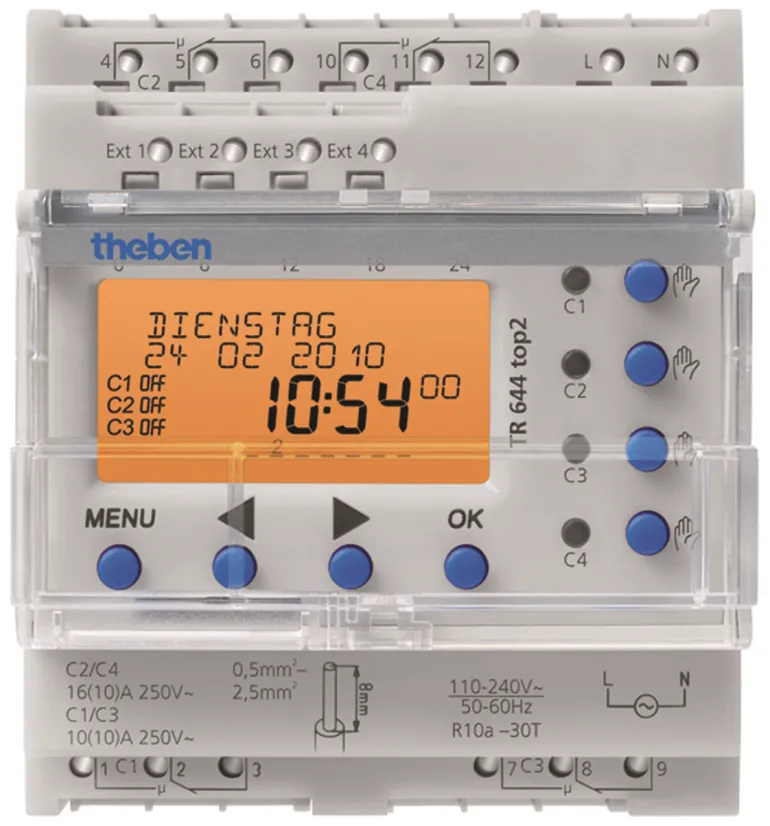 Astro-kellot eivät vaadi ulkoista valotunnistinta, vaan valo syttyy ja sammuu maantieteellisten parametrien, pituus- ja leveysasteiden mukaan. Kello laskee auringon nousun ja laskun maantieteellisen sijainnin perusteella määritellylle sijainnille vuoden kaikille päiville. Tarkoitettu asennettavaksi DIN-kiskoon. Kolme eri mallia yhdellä/kahdella kanavalla astronomisella päivä-/viikko-ohjelmalla. Looginen ja yksinkertainen tekstipohjainen ohjelmointi ja selkeät valikot. Suurikontrastinen selkeä teksti taustavalaistulla näytöllä.