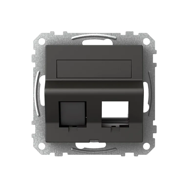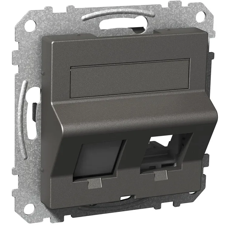 Exxact-sarjan kulmamallin antrasiitinharmaa keskiölevy 2x Actassi S-One DPM- ja/tai Keystone-liittimeen. Mahdollista yhdistää mm. S-One DPM- ja Keystone-sovittimet, tyyppi USB. Asennus liitäntärasiaan cc 60 mm tai pinta-asennettuna rasiaan vähintään 33 mm Cat 6 UTP: lle ja mieluiten 47 mm STP: lle. Säädettävä kaksisivuinen tyyppikilpi; tyhjä, teksti ja värikoodaus. Täydennetään RJ45-liittimellä ja Exxact-kehyksellä.