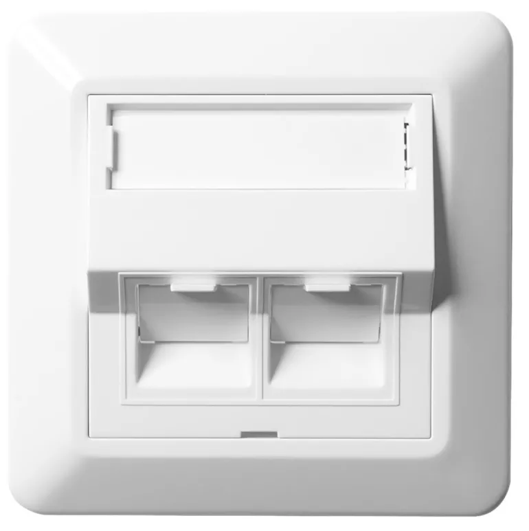 Vino keskiölevy aukoilla kahdelle Keystone-liittimelle, mukana kehys ja kaksi pölysuojusta. ELKOlla on valikoimassaan useita adaptereita, joissa on aukot Keystone-liittimille, esim. HDMI-adapteri, antennirasia, kaiutin- ja kuiturasia.