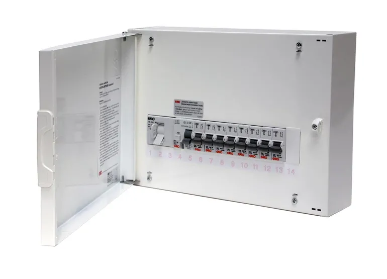 GAROn kalustetut teräslevykeskukset pinta-asennukseen. Keskus on aina varustettu ovella, joka voidaan kääntää tarpeen mukaan. Ovissa on myös valmius lukon asentamiseen. Syvyys DIN-kiskojen takana on 23 mm. Sisäosa pysyy paikallaan yksinkertaisilla kiinnikkeillä koko ja se voidaan taittaa auki asennuksen tai säätöjen aikana, jolloin työskentelytila on miellyttävämpi ja ulostulokaapeleiden loppuasennus helpompi. Näin voidaan varmistaa keskusten kokonaisriski puutteellisesti liitettyjen johtimien läpilyönnin ja valokaarien osalta.