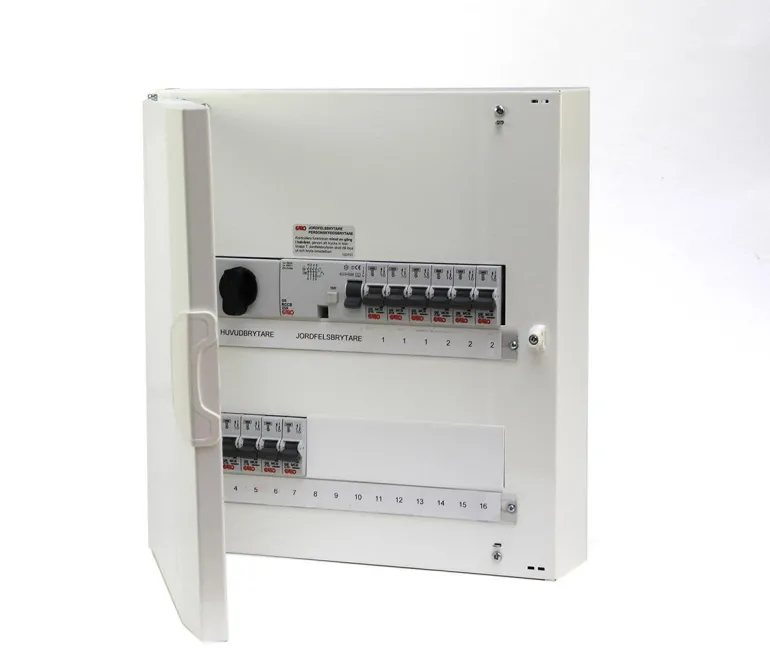 GAROn kalustetut teräslevykeskukset pinta-asennukseen. Keskus on aina varustettu ovella, joka voidaan kääntää tarpeen mukaan.
