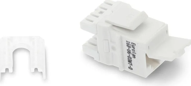 Luokan 6 EuroLAN Keystone -liitinyksikkö EuroLAN Cat 6 -laajakaistakaapelin liittämiseen pistorasioihin, rasioihin ja paneeleihin. Tämä liitinyksikkö on helppo asentaa, joten se on tehokas ratkaisu useimpiin asennuksiin.