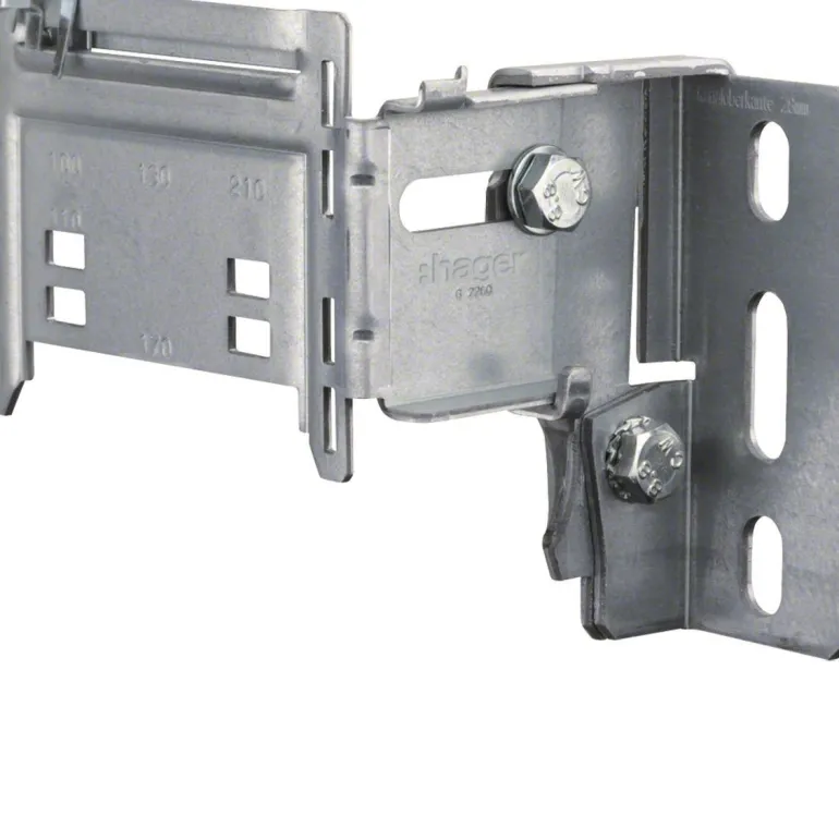 Täydellinen kiinnike koostuu sovitinlevystä ja kannatinvarresta. Kannatinvarsi valitaan halutun seinän ja kanavan välisen etäisyyden mukaan. Mitat on merkitty kiinnikkeeseen, joka osoittaa korkeuden, johon kanava päätyy. Kantavuus jopa 75 kg 600 mm:n etäisyydellä. Ristikko asennetaan käyttäen ristikkopidikkeitä, jotka on sijoitettu kannatinvarsiin. Voidaan yhdistää etulevyjen tai etulevyjen tukijalkoihin