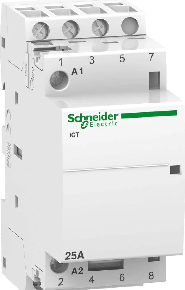 Saatavana 1–4-napaisena 100 A asti. Kelajännite: 24 tai 230/240V AC. Virtapiiri: Monisäikeinen johdin, 2×2,5 mm², 16 ja 25A, 2×10 mm².