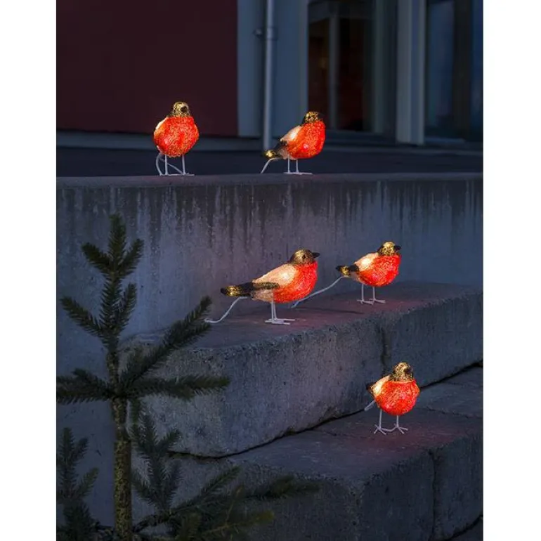 Konstsmide 6269-203 on koristevalaisin, jossa on 5 punatulkkua. Punatulkut ovat 12 cm korkeita. Akryyli, 40 valkoista LED-valopistettä. Sopii ulkokäyttöön.