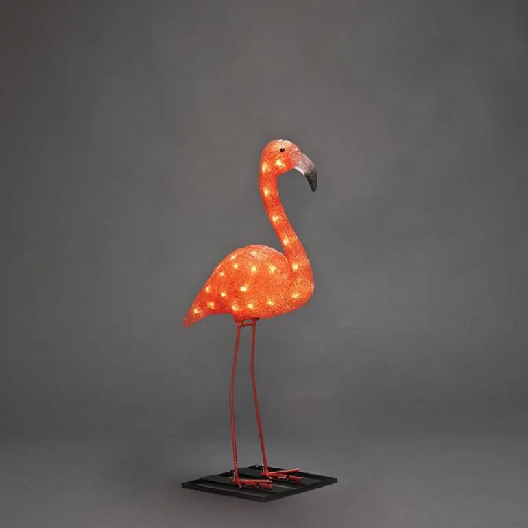 Konstsmide 6272-803 on flamingon muotoinen koristevalaisin. Akryyli. 48 valopistettä, valon väri: oranssi. Sopii ulkokäyttöön.
