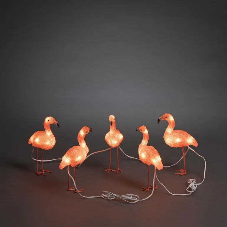 Konstsmide Flamingo on himmennettävä koristevalaistusyksikkö, jossa on 40 LED-valonlähdettä. Mallin teho on 0,02 W / lamppu ja kokonaiskirkkaus 1,5-2 luumenia. 5 flamingoa.