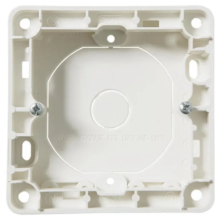 Elko EKO09377 on 1-lokeroinen korotuskehys upotettavalle 2-osaiselle ruuviliitännällä varustetulle pistorasialle pinta-asennukseen. Valmistettu halogeenittomasta kestomuovista.