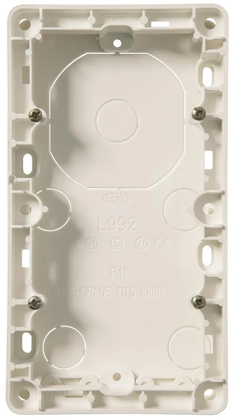 Elko EKO05093 4-lokeroinen korotuskehys mm. upotettavia kytkimiä, yhdistelmäpistorasioita ja heikkovirtalaitteita varten pinta-asennukseen. Voidaan asentaa kojerasiaan olemassa olevan asennuksen laajentamiseksi, kaapelin ulostulon yli tai kaapelilla syöttämiseen sivulta. Valmistettu halogeenittomasta kestomuovista.
