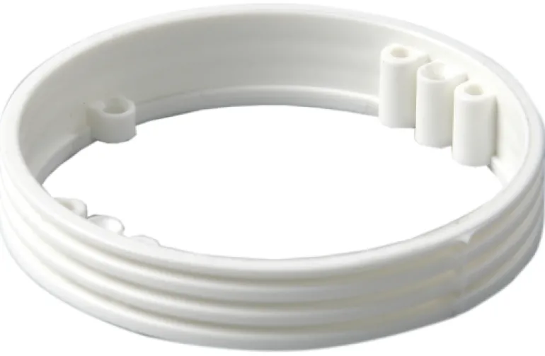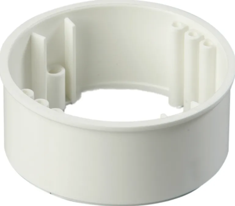 Pyöreät korotusrenkaat laiterasiaan c/c 60 mm. Valmistettu valkoisesta polyeteenistä. Käytetään, kun rasian reuna täytyy rakentaa seinän tasolle. Lisää mittaa 13 mm.
