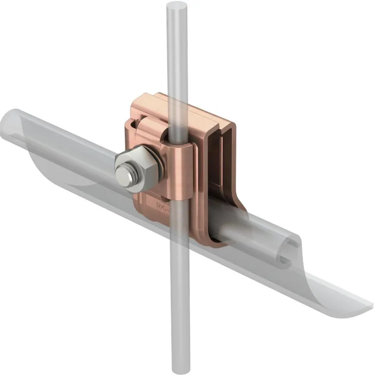 RK-FIX-kiinnike räystäskouruun, pitkittäis- ja poikittaissuunta. 2 pyöröjohtimelle Rd 8.
