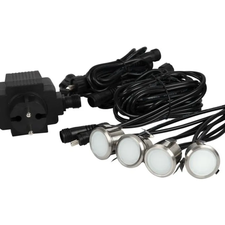 Sarja koristeellisia valaisimia, jotka kuluttavat vähän sähköä ja tuottavat terassille energiatehokkaan valaistuksen. Luomalla ulkovalaistuksella hauskoja tehosteita lisäät myös turvallisuutta talon ympärillä. Mukana 2 kpl 0,5m kumikaapelia ruuviliittimillä. Sarjaan sisältyy 4kpl valaisimia, 3 kpl 1 m jatkokaapeleita pikaliittimellä sekä 1 kpl IP44 plug-in-muuntaja 5 m johdolla. Voidaan käyttää yhdessä Spotlight Gardenin kanssa yhteisen kytkentäjärjestelmän ansiosta.