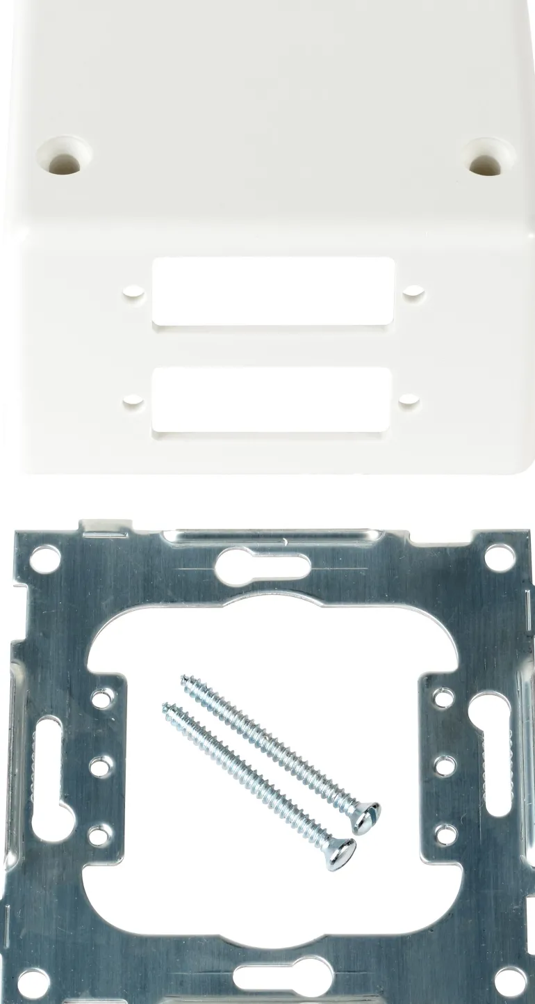 Halogeenittomasta lämpömuovista valmistettu vino keskiölevy, jossa on metallinen asennuskehys, ilman liittimiä. Sopii kytkentärasioihin, joiden kiinnitysruuvien väli on 60 mm, ja yhdistettynä Elko-yhdistelmäkehyksiin, katso luettelo 18. Pinta-asennuksessa käytetään Elko-korotuskehyksiä, katso luettelo 18.