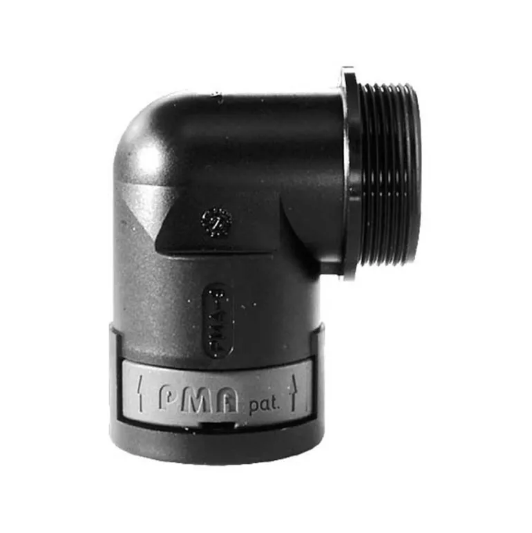 Kulmaliitin 90° pikaliitännällä, IP 66. Saatavilla myös IP-luokalla IP 68.