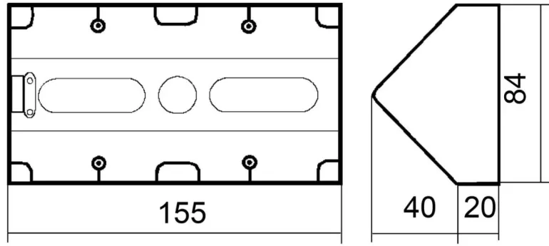 Elkon RS -sarjan kulmapistorasia asennettavaksi yläkaapin alle tai kulmaan. Kulmapistorasiassa on kolme maadoitettua pistorasiaa. Kytkentätapa ruuviliitos.