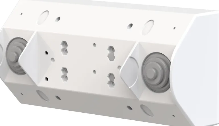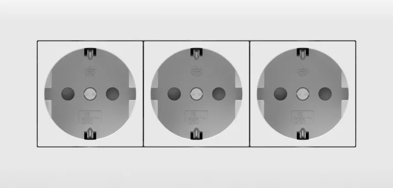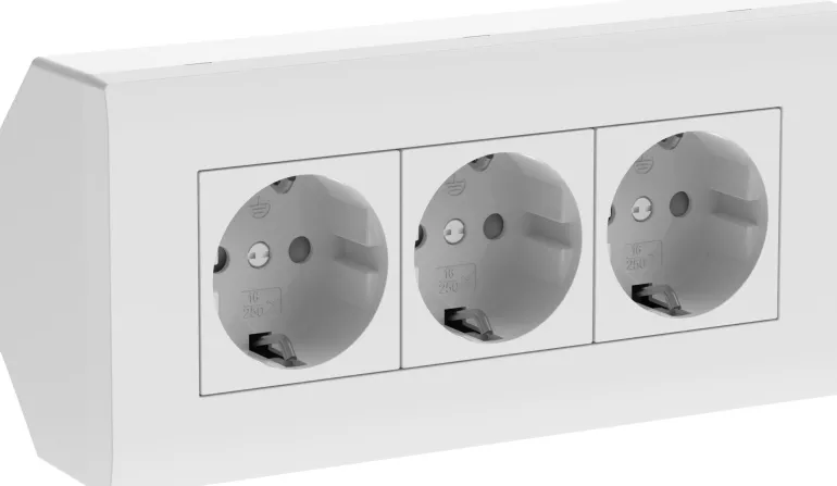 Seinäpistorasia kosketussuojalla. Sopii pinta-asennukseen kulmiin ja kaappien alle. Seinäpistorasia sisältää vedonpoistajan. Asennettu valmiiksi kulmarasiaan. Pistorasioissa on pistorasiareiät vaakasuoraa asennusta varten. Kulmarasian takaosassa on uritus putkiliitäntää varten (16 tai 21 mm). Sivulla on urat pintajohtoa varten. Useita kulmarasioita voidaan asentaa peräkkäin.