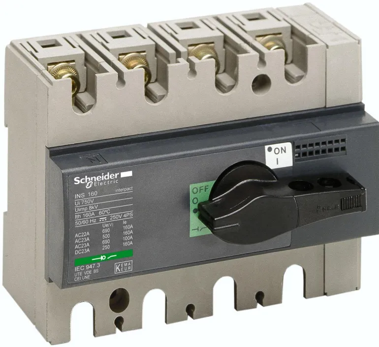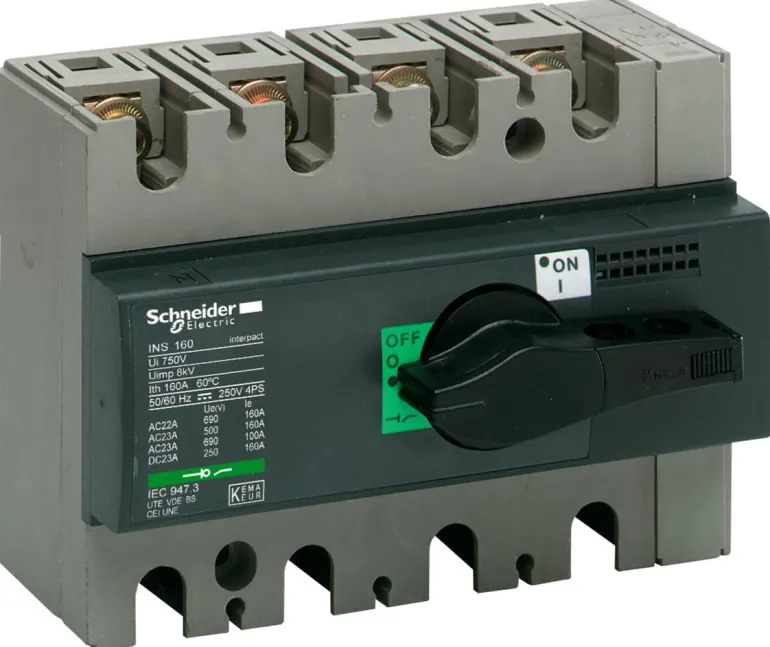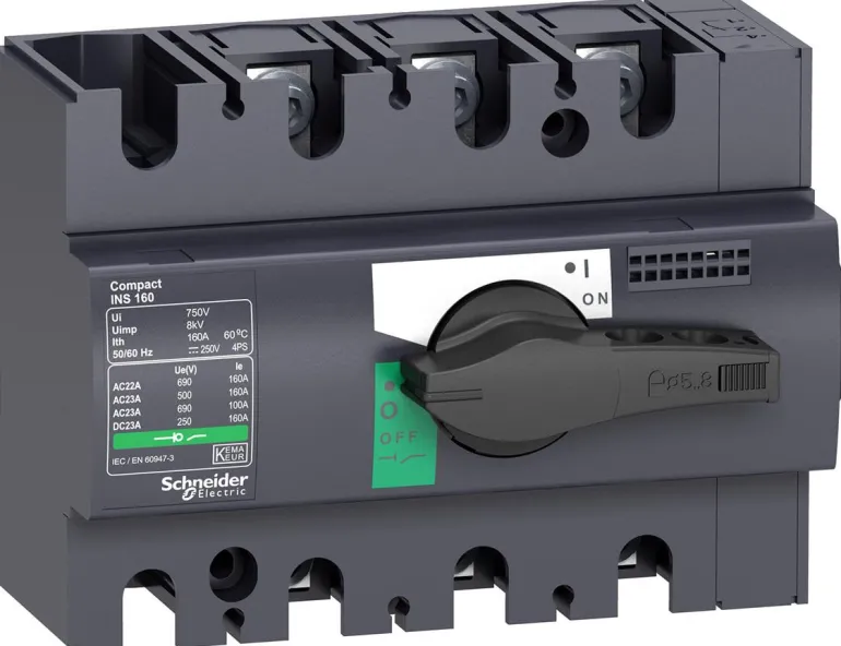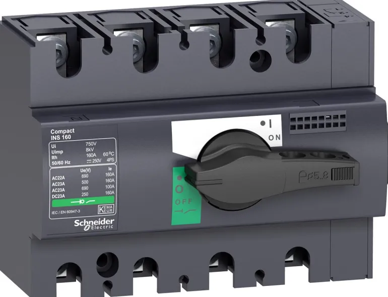 Kuormankytkin, ComPact, INS160, 4-napainen, 160 A, mustalla vääntimellä.