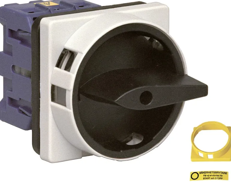 Jokaisessa kytkimessä on lukittava nuppi, ylimääräinen keltainen kehys nupille, kun sitä käytetään turvakytkimenä, sekä keltainen etiketti, jossa lukee ”turvakytkin”. Harmaa kehys on helppo vaihtaa vääntimen takana olevalla ruuvilla. Kytkimet ovat standardin SS-EN 60947-3 mukaisia.