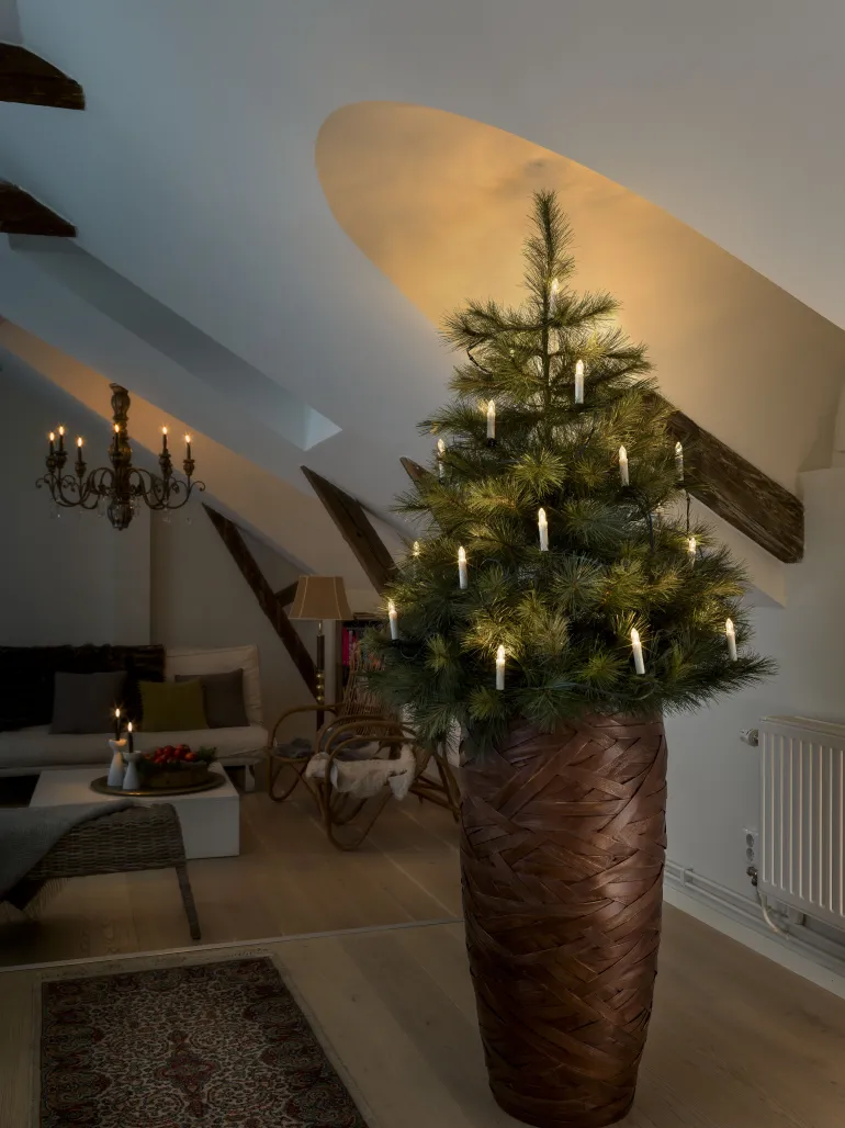Konstsmide 2038-010 on kuusenkynttiläsarja 25 LED-kynttilällä, vihreä johto. 230V/IP20.