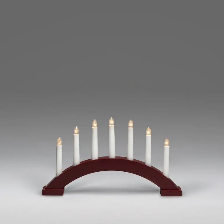 Konstsmide 3972-520 on tummanpunainen puinen sähkökynttelikkö, jossa on 7 valopistettä. Sähkökynttelikön valovirta on 8 luumenia, ja se on varustettu valkoisella 170 cm:n pituisella johdolla, jossa on kytkin.