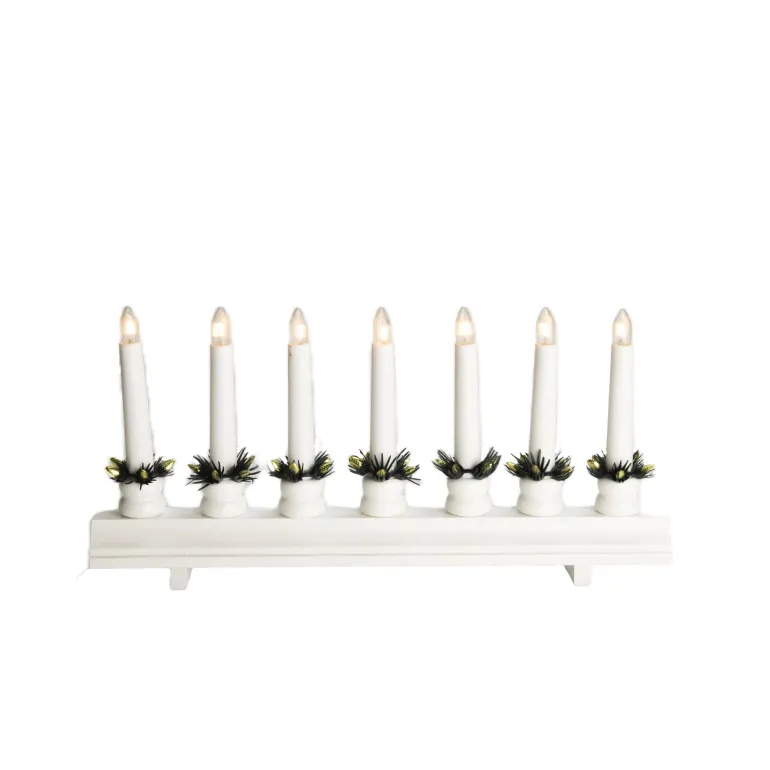 Konstsmide 1010-500 on matala puinen sähkökynttelikkö 7 kynttilällä (punainen lakattu). Valoteho 8 lm ja valkoisen kytkimellisen johdon pituus 170 cm, 230 V.