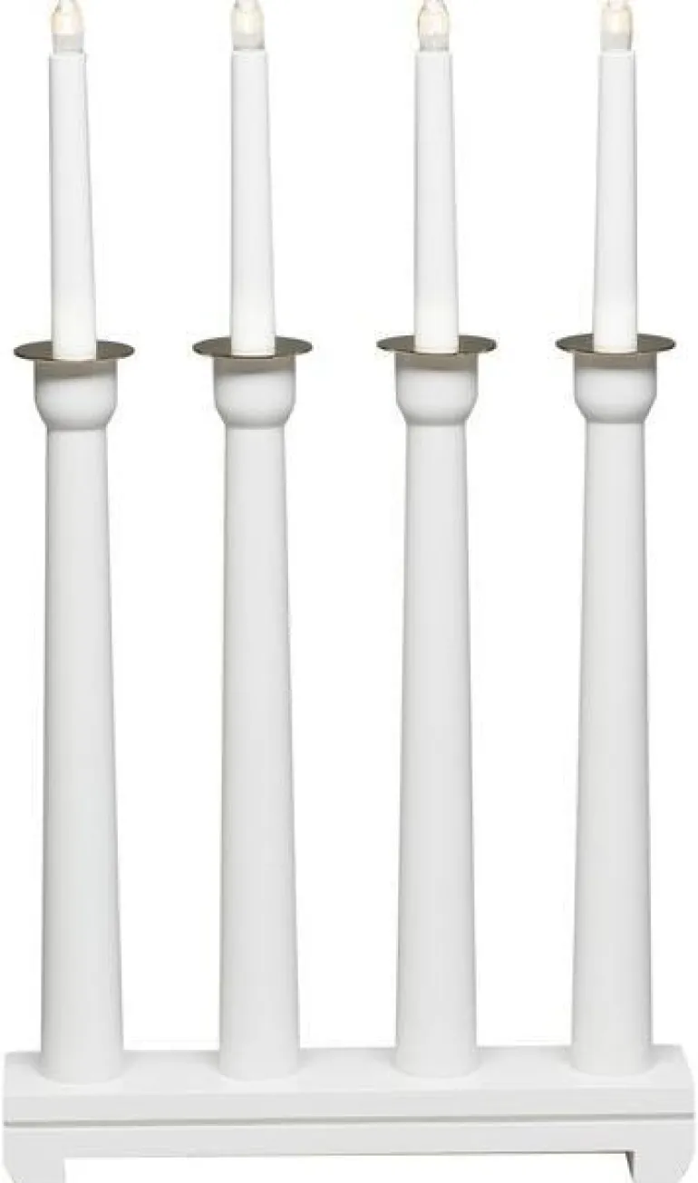 Konstsmide 3975-210 on puinen sähkökynttelikkö 4 kynttilällä. Valkoinen, 230 V/IP20.