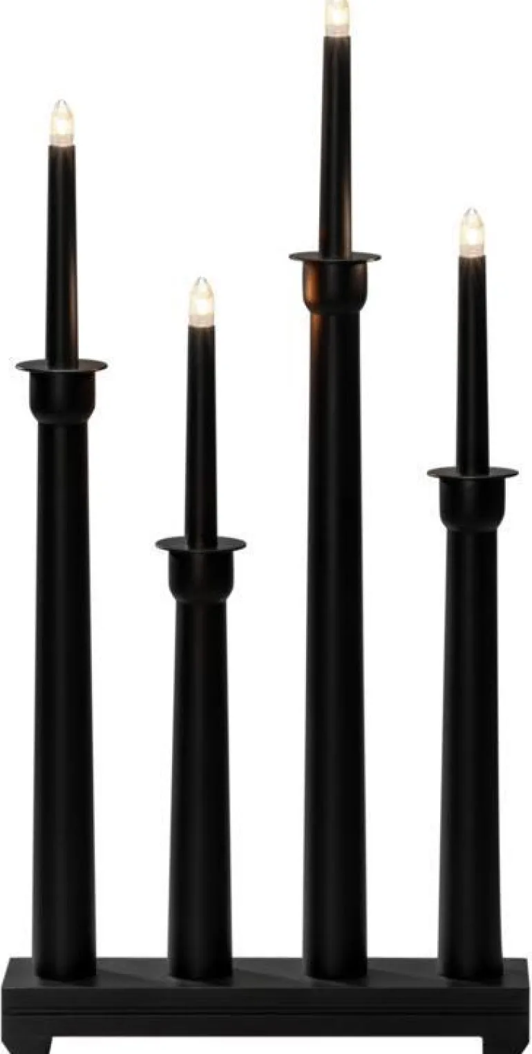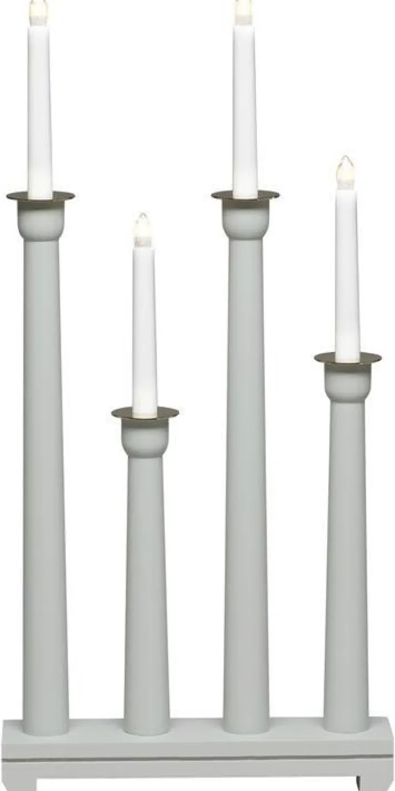 Konstsmide 3977-310 on puinen sähkökynttelikkö 4 kynttilällä. Harmaa, koristerenkaat messingistä. 230 V/IP20.