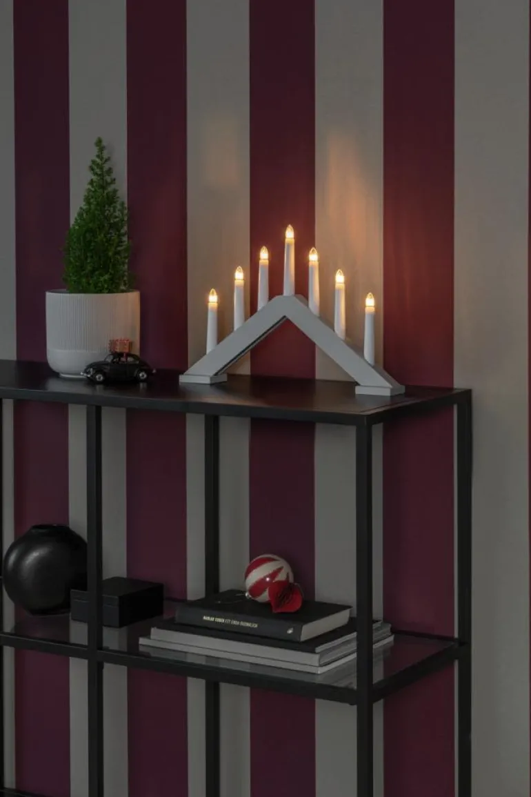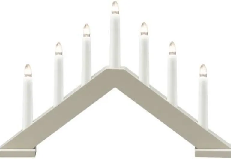 Konstsmide 3985-975 on puinen sähkökynttelikkö 7 kynttilällä. Beige (mattapinta). Kytkimellä, 230V / IP20.